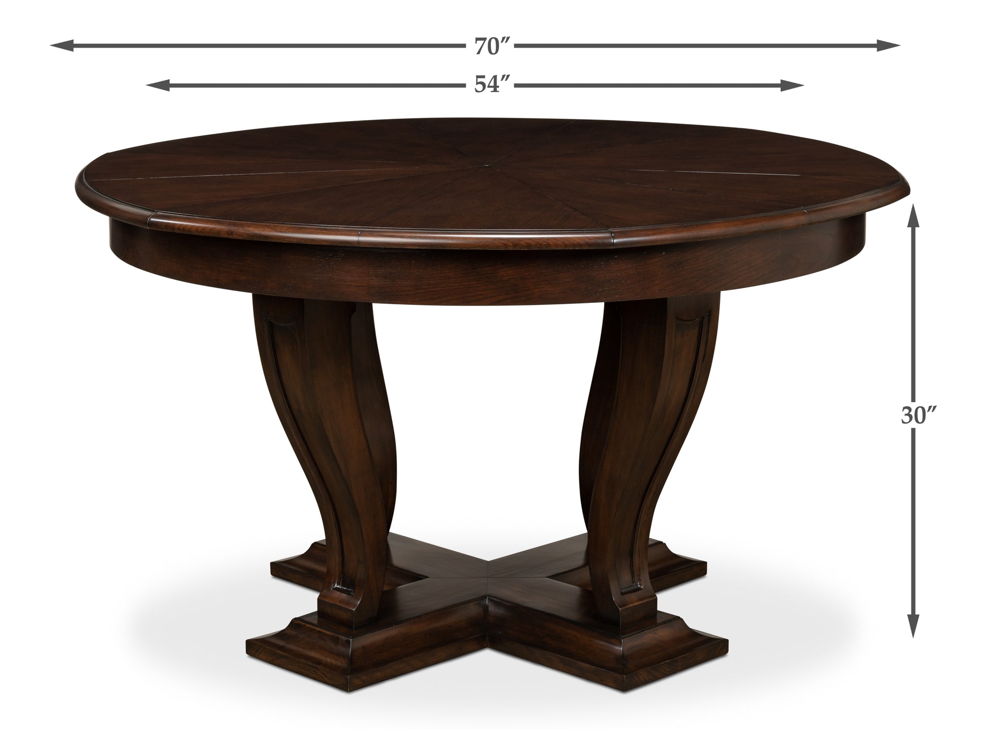 - Effortless Expansion: The "jupe" mechanism allows the table to gracefully extend from a 54-inch diameter to a generous 70-inch diameter, accommodating both intimate gatherings and larger groups.