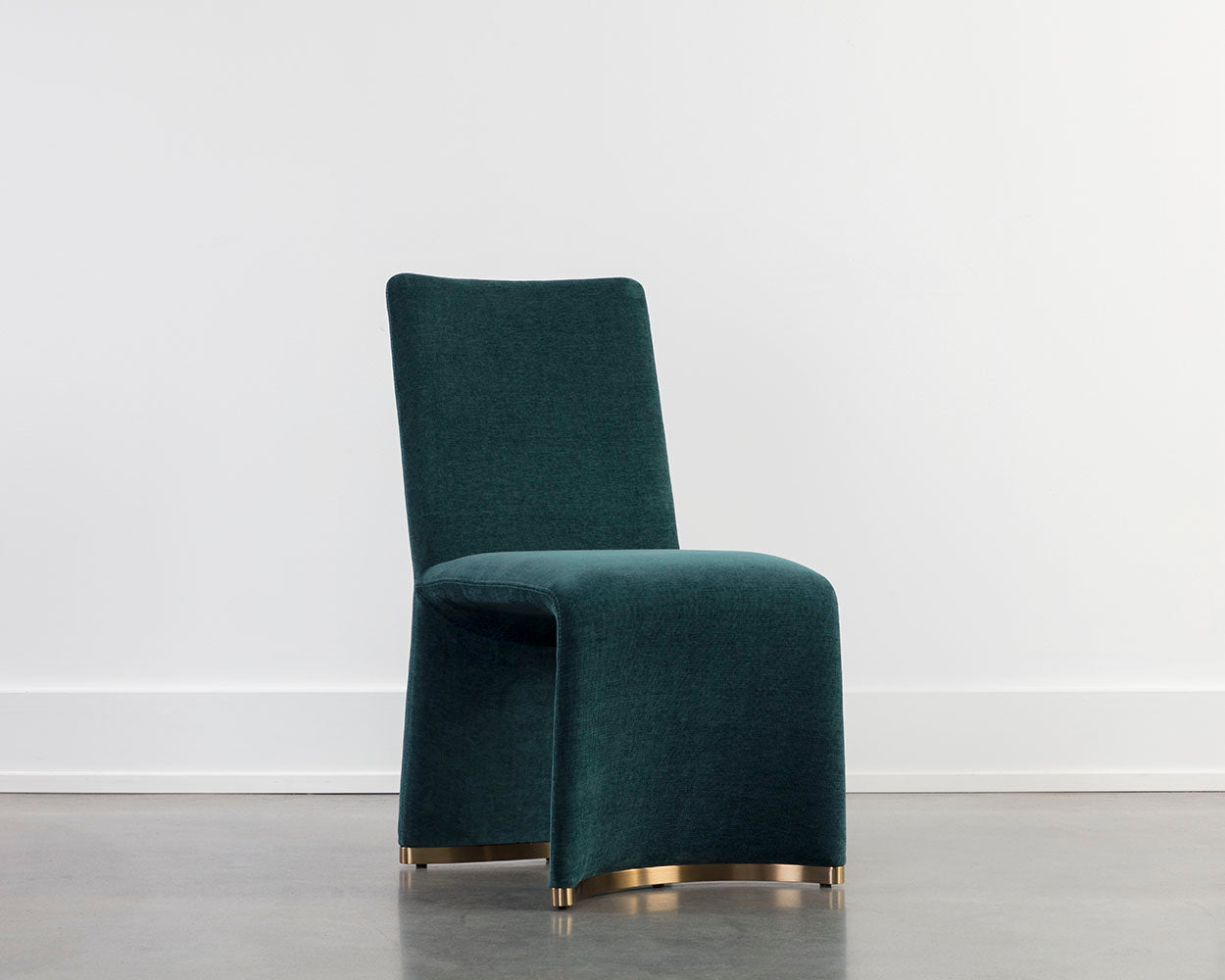 Refined Design: The Sunpan Cataldi Dining Table features mixed materials and architectural influences for a sophisticated aesthetic, while the Iluka Dining Chair's contoured curves provide ultimate support.