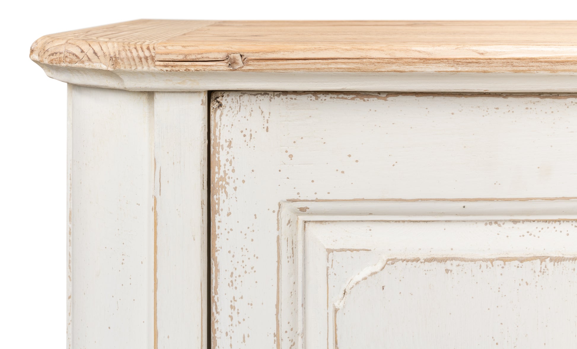 Transform your dining space with the Antique Whitewash Sideboard by Sarreid, crafted from reclaimed pine and finished with an antique whitewash that exudes charming country aesthetics. The natural old pine top adds warmth and authenticity to your decor.