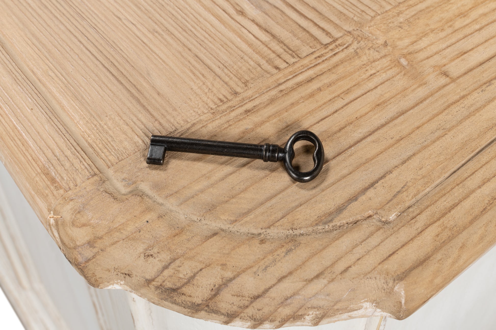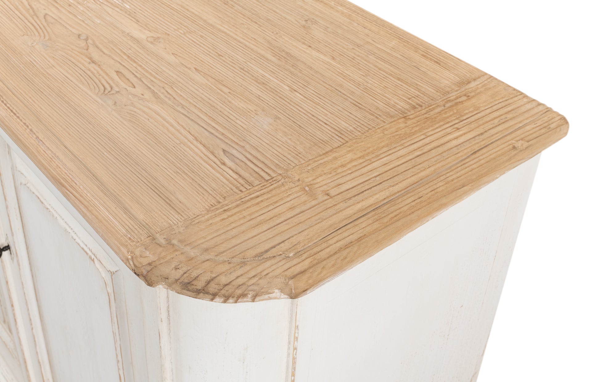 Rustic Charm: Crafted from reclaimed pine with a natural old pine top and antique whitewash finish.