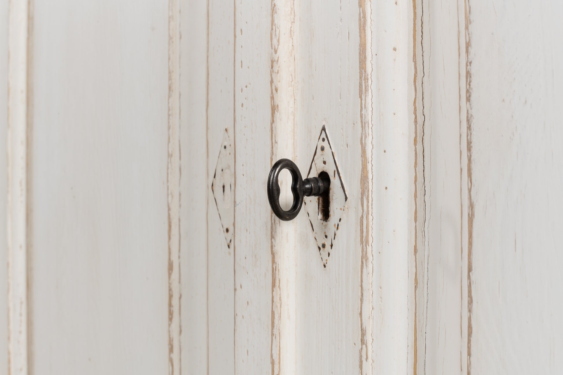 Ample Storage: Six doors with unique detailing provide extensive storage space.
