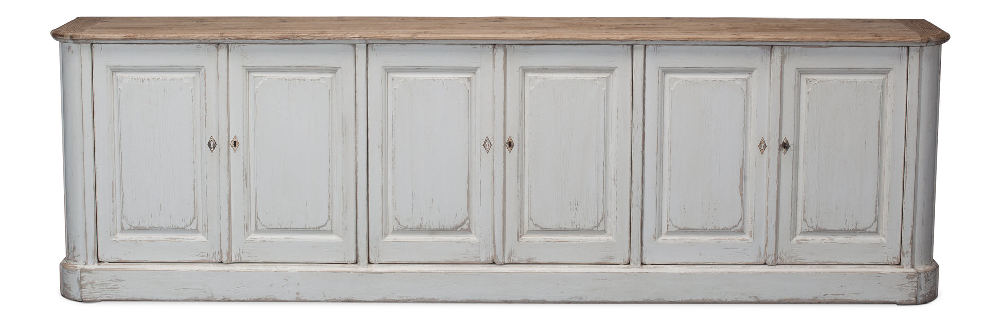 Infuse your dining space with rustic charm using the Sarreid Antique Whitewash Sideboard, expertly crafted from reclaimed pine. Featuring a natural old pine top that adds warmth and character, and adorned with an antique whitewash finish for timeless appeal.