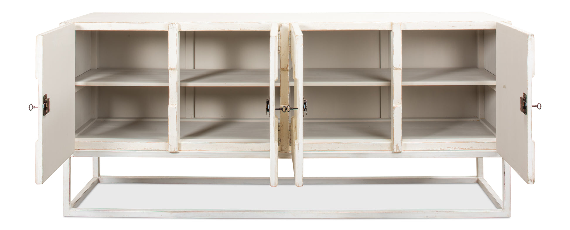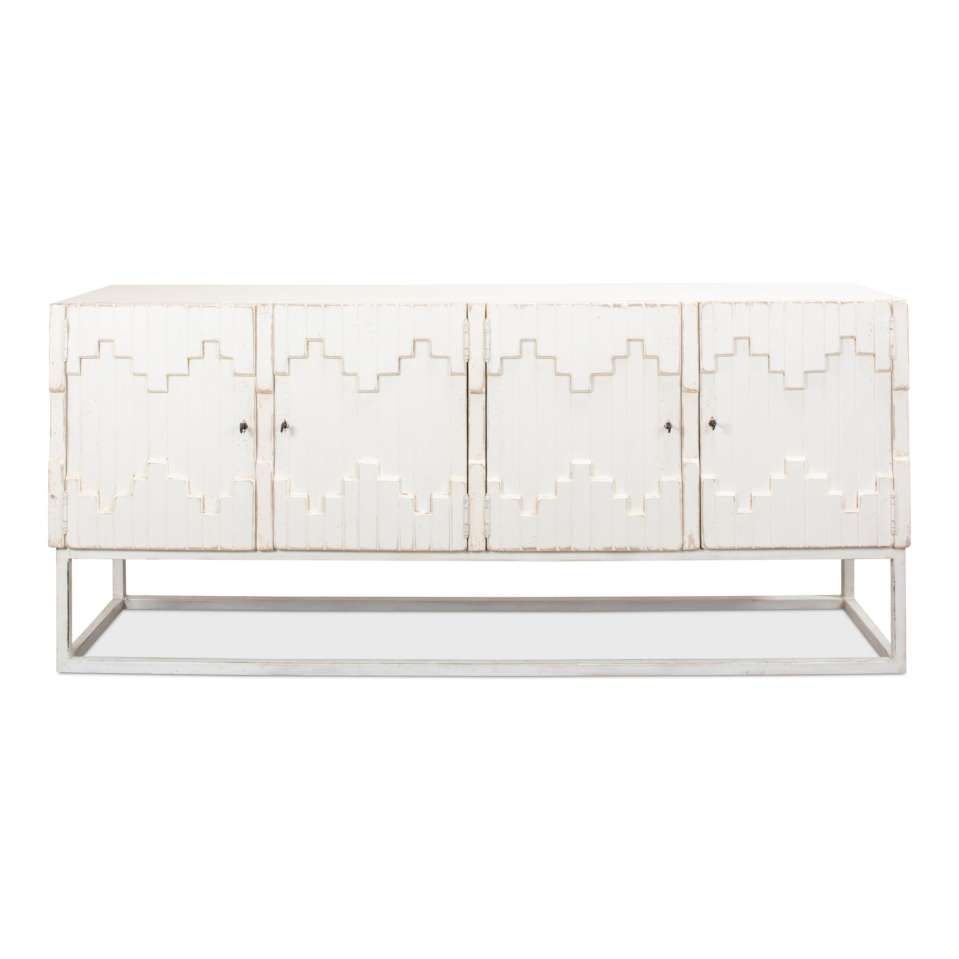 Sarreid - Aztec Sideboard On Stand Whitewash - White - Eclectic