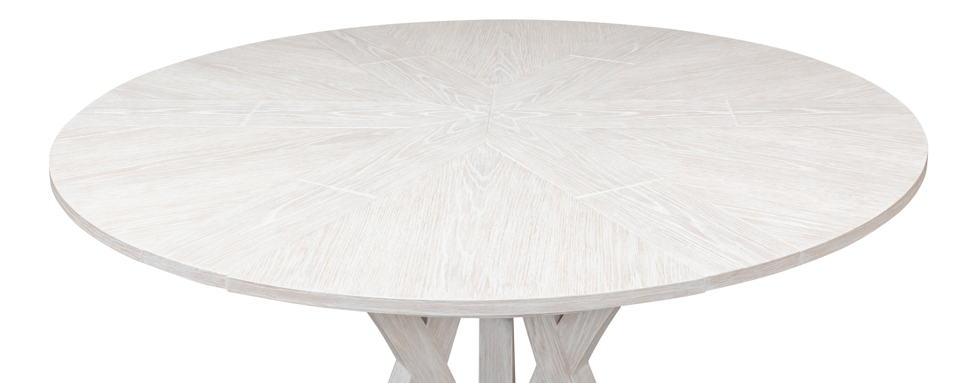 - Sophisticated Whitewash White Finish: The Casual Jupe Dining Table boasts a sophisticated Whitewash White finish that exudes timeless elegance and effortlessly complements a variety of décor styles. This versatile hue creates a light and airy feel in your dining space, making it perfect for both casual and formal settings.