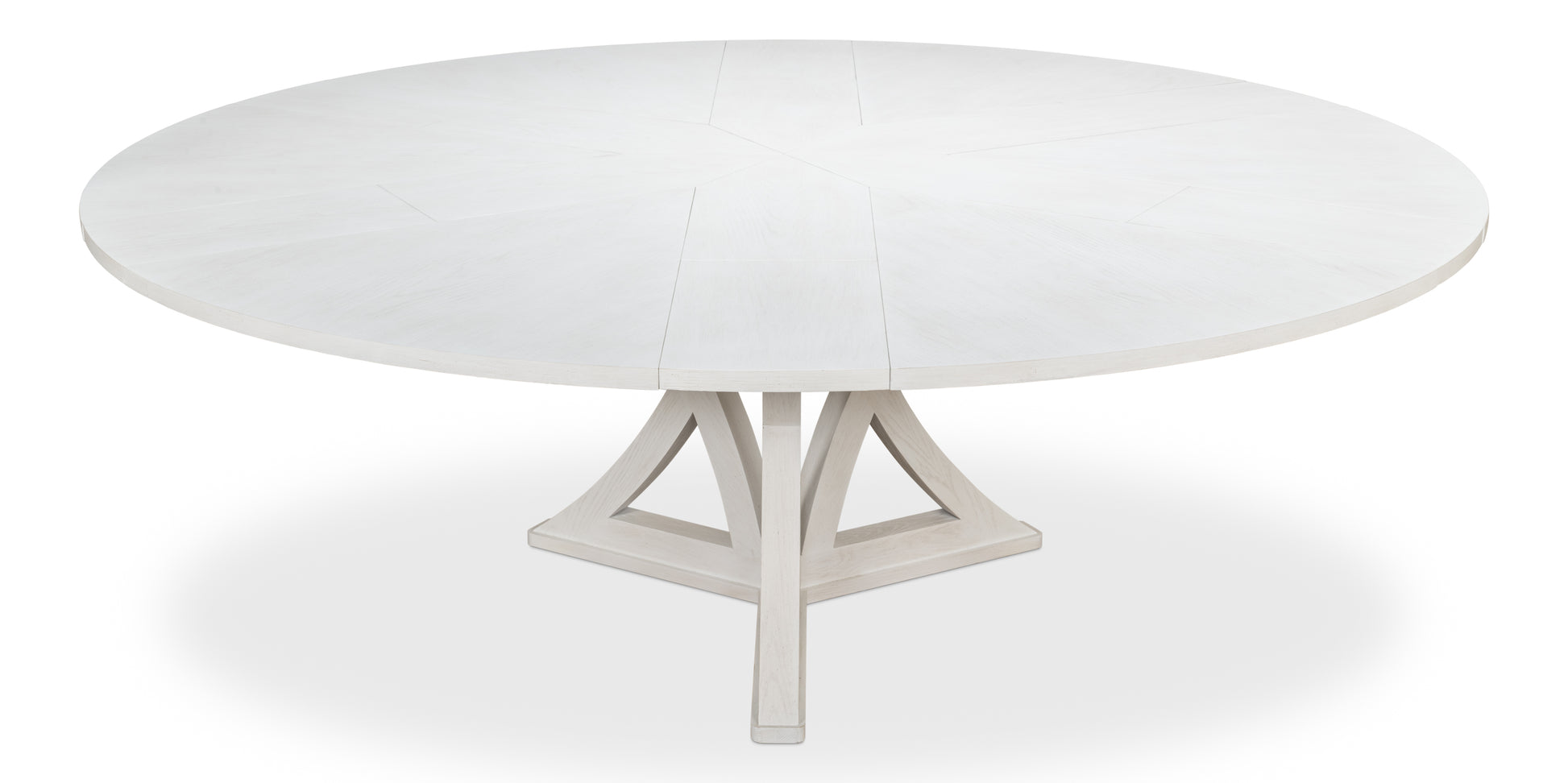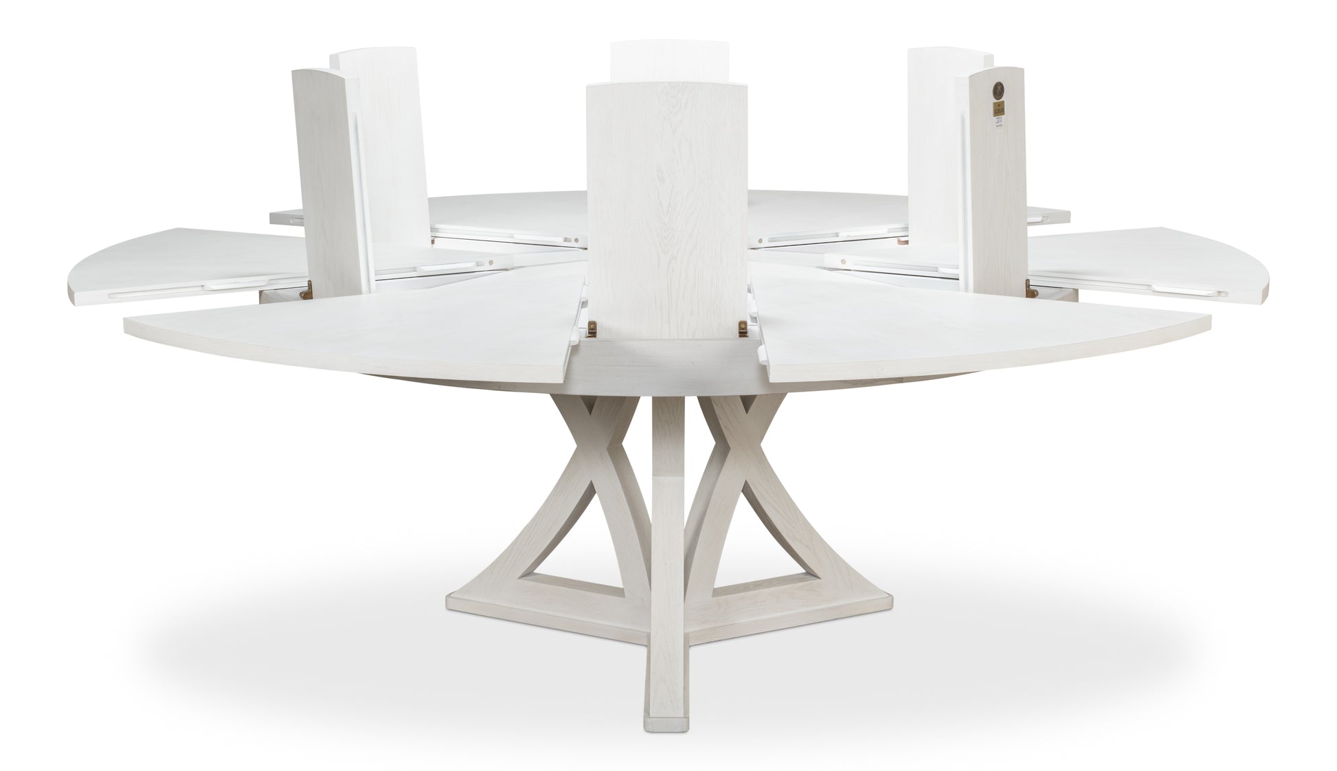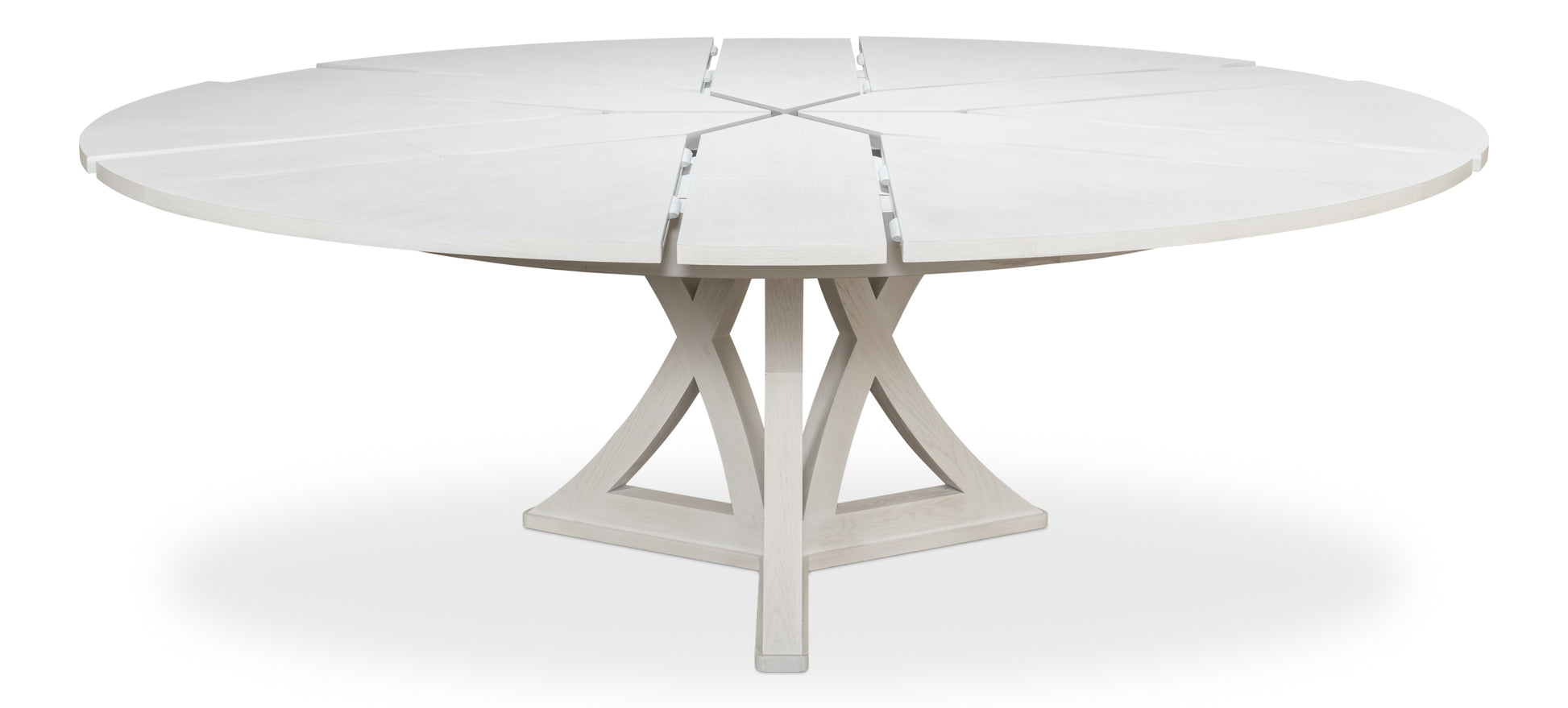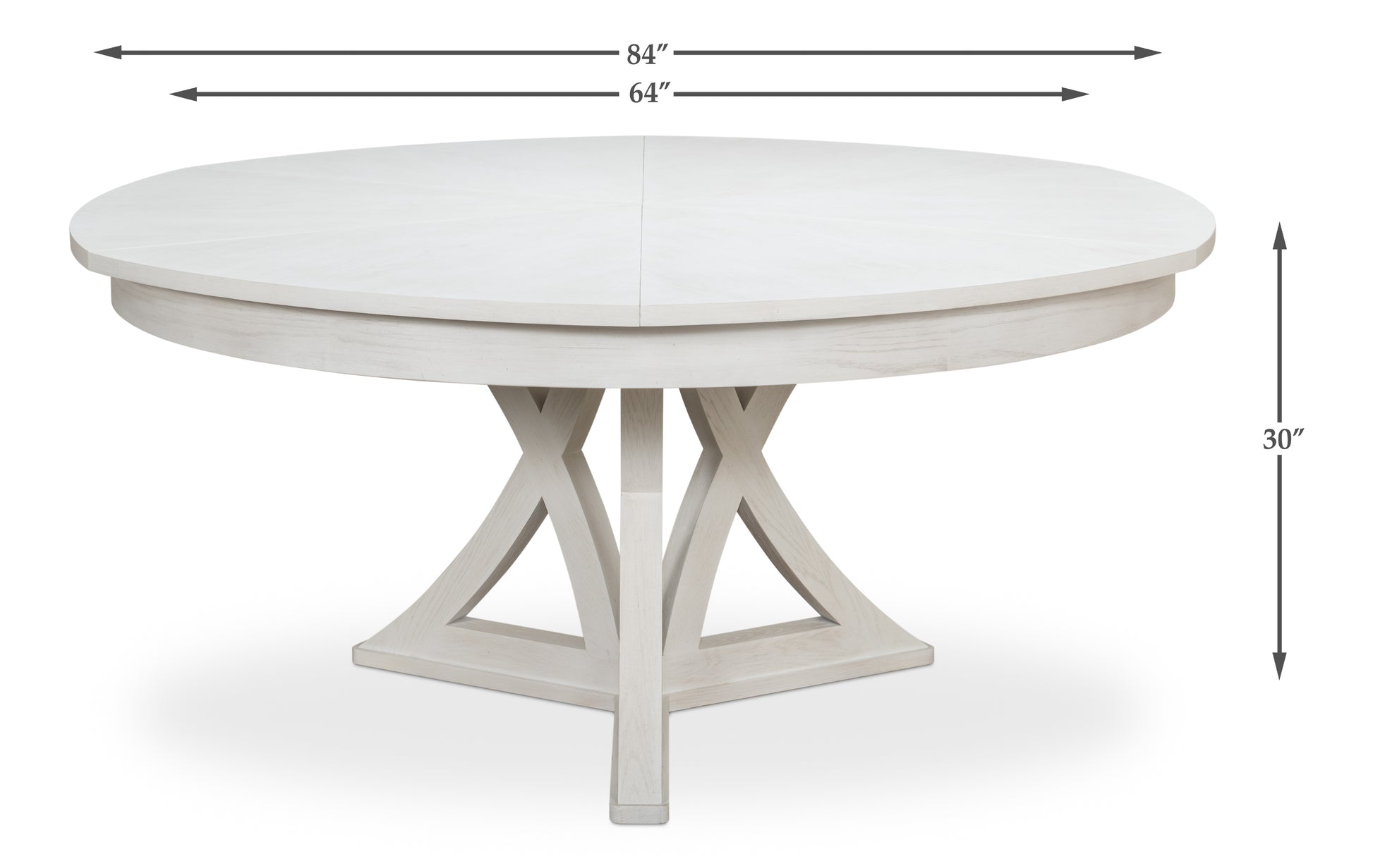 - Expandable Design: The Casual Jupe Dining Table effortlessly transforms from a cozy 64-inch diameter table to a generous 84-inch table when open. This simple mechanism allows you to easily adjust the table's size to accommodate intimate dinners for four or larger gatherings of up to twelve.