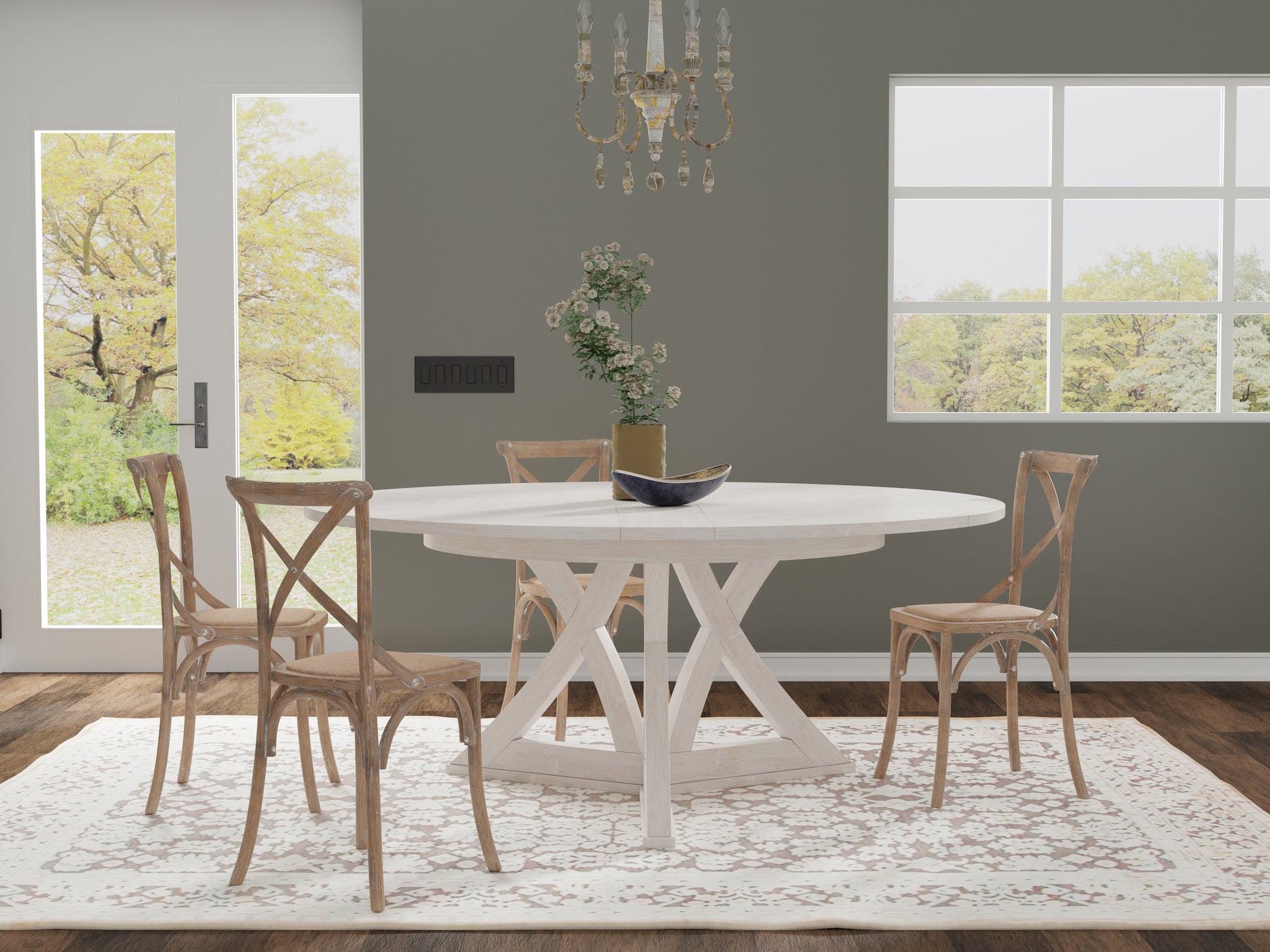 - Sophisticated Whitewash White Finish: The Casual Jupe Dining Table boasts a sophisticated Whitewash White finish that exudes timeless elegance and effortlessly complements a variety of décor styles. This versatile hue creates a light and airy feel in your dining space, making it perfect for both casual and formal settings.