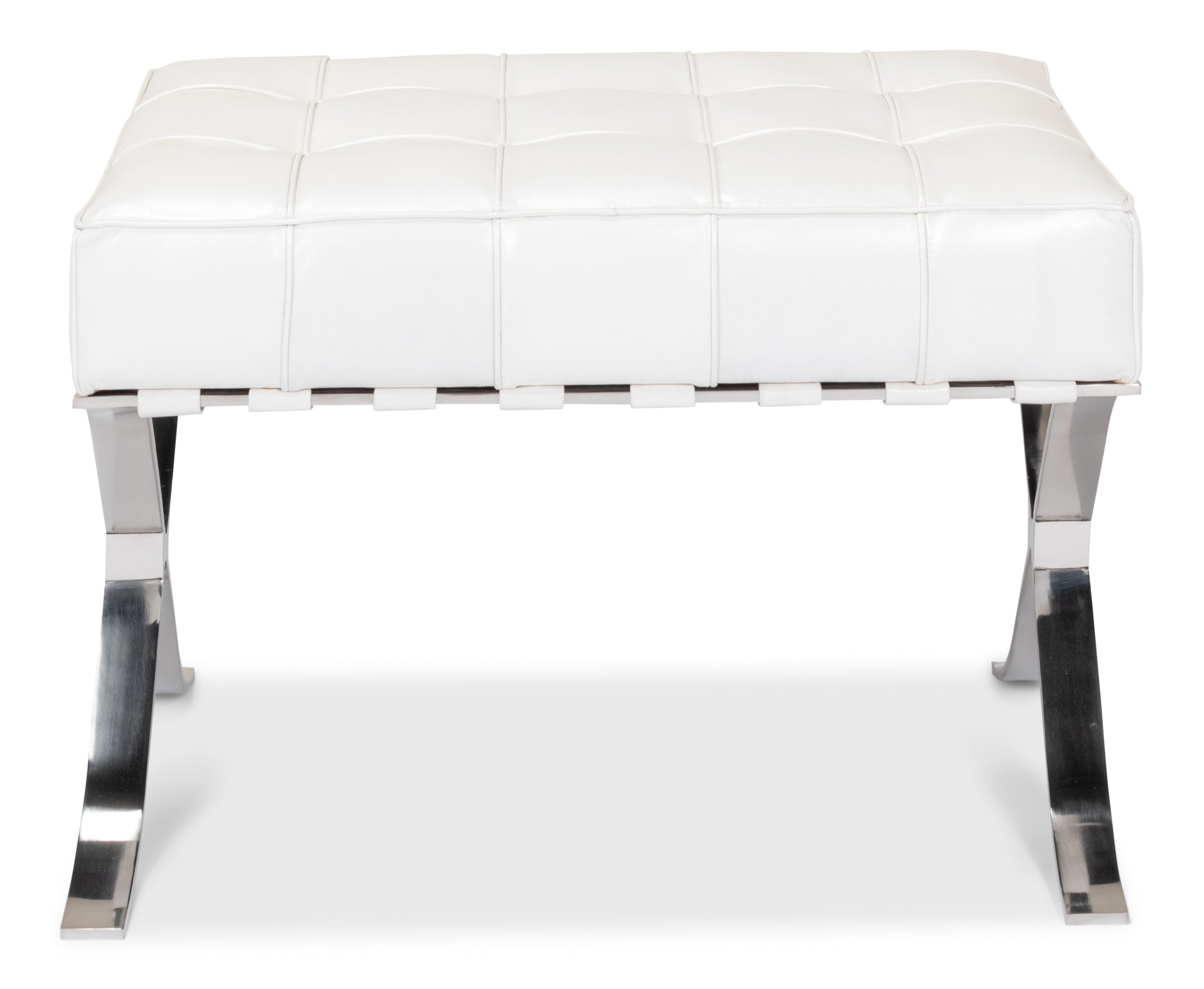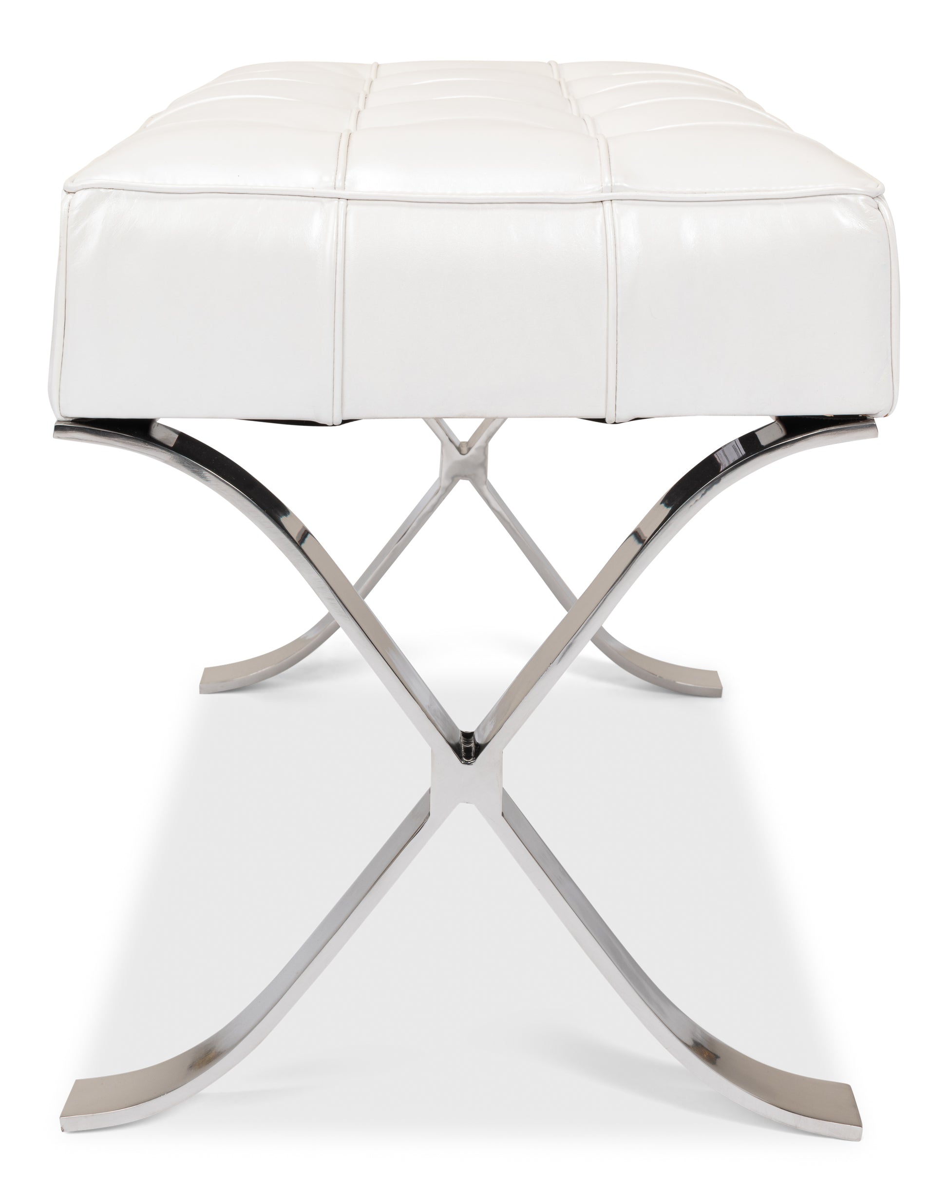 - Pristine White Pearl Leather Finish: The Catalunya Bench exudes sophistication with its pristine white pearl leather finish. This luxurious material adds a touch of glamour to your space, creating a lasting impression.