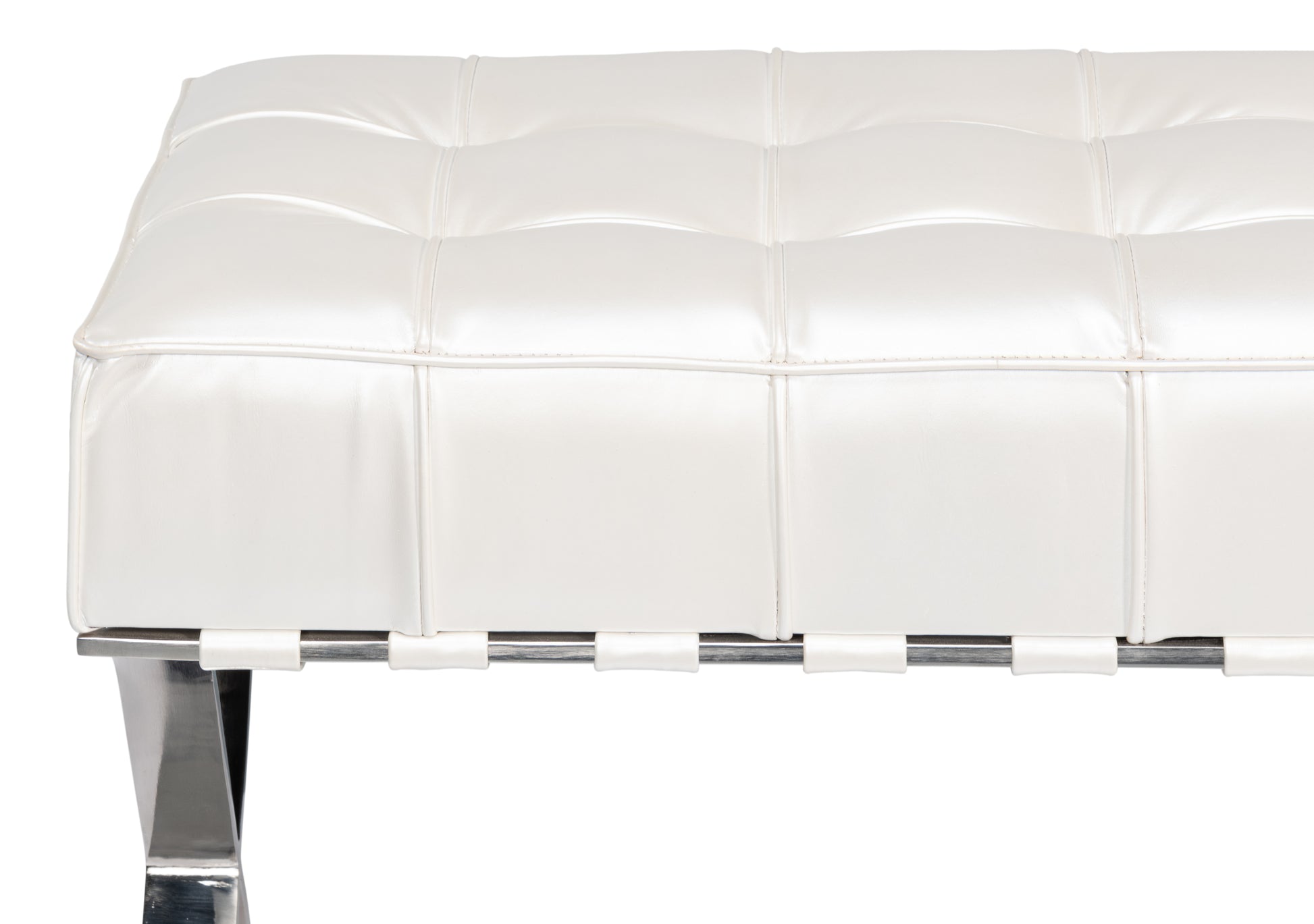 - Rich Textured Leather: The sleek lines and minimalist design of the bench are beautifully complemented by the rich texture of the white leather. This creates a visually captivating piece that is both stylish and inviting.