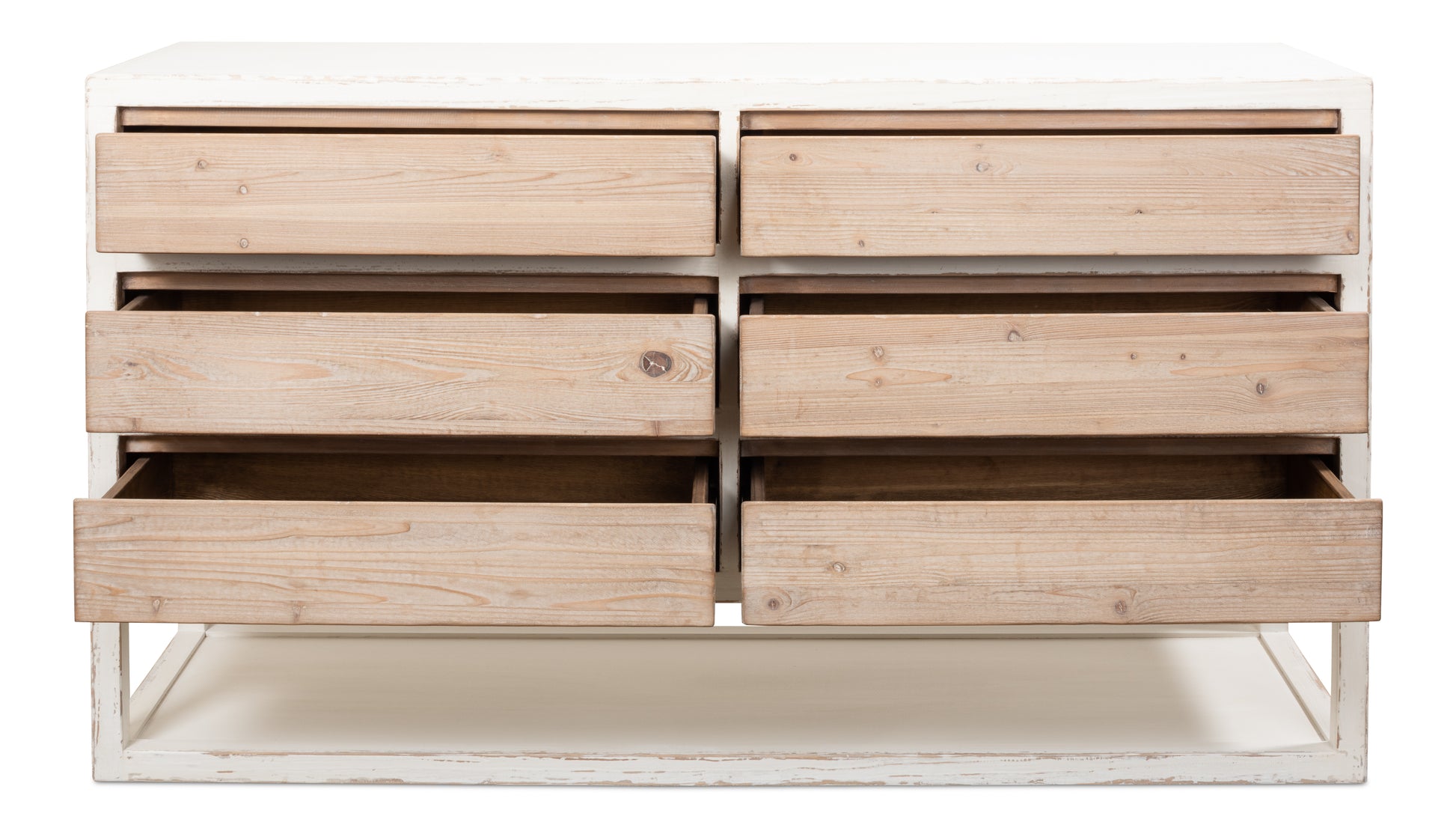 Elevate your dining area with the timeless elegance of the Connor Sideboard, a stunning fusion of modern functionality and rustic charm. Crafted from reclaimed fir, this sideboard boasts a captivating Antique White finish that exudes a sense of history and refinement, perfectly complemented by the weathered look of its drawers. The Connor Sideboard is not just a storage solution, it's a statement piece that anchors your dining space with its substantial presence and sophisticated design. This sideboard is ideal for stowing away your finest dinnerware, linens, or even showcasing decorative accents. The Connor Sideboard effortlessly blends into a variety of interior design schemes, from modern farmhouse to classic transitional, making it a versatile and stylish addition to your home.