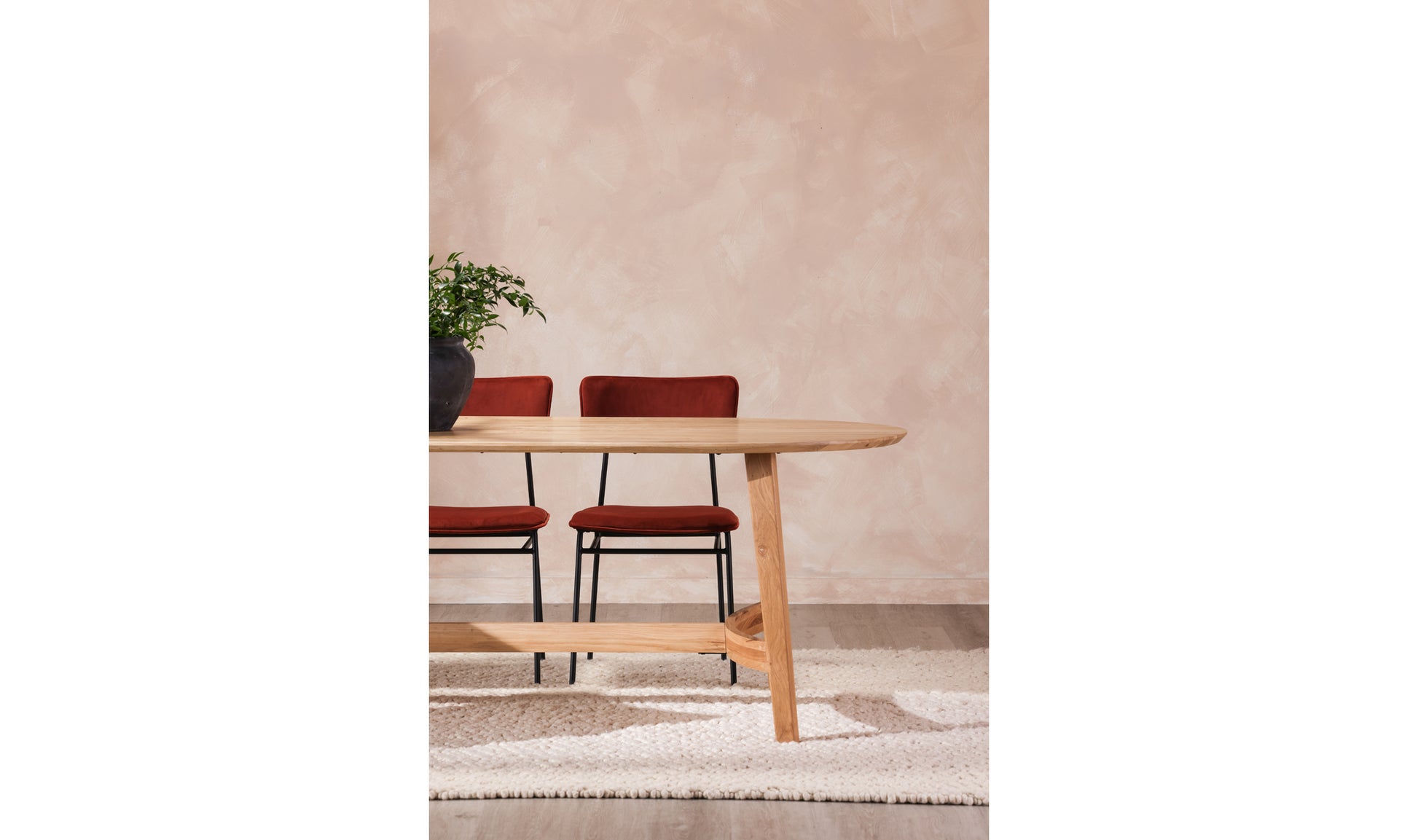 Trie's solid oak construction offers durability and a timeless aesthetic that effortlessly complements any dining space. The natural finish highlights the unique wood grain patterns, adding warmth and character to your home. The table's design ensures a comfortable and inviting atmosphere for family meals, celebrations, or everyday dining.